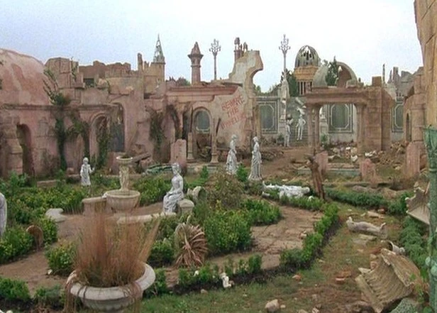 The ruined Emerald City, as Dorothy finds it in Return to Oz.