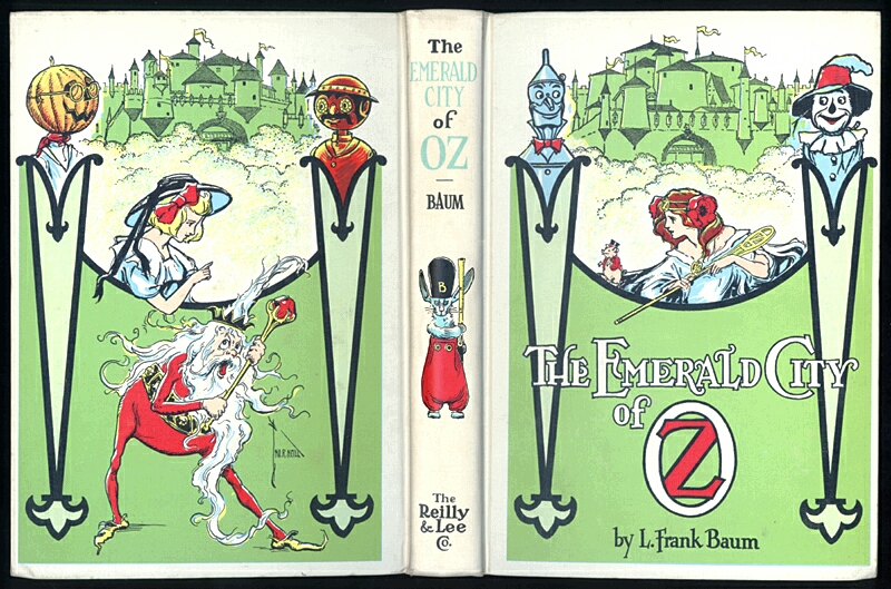 The Emerald City, is the largest city in the magical Land of Oz. It stands in the very center of Oz and is the imperial capital of the entire country. It was imagined by L. Frank Baum, aka the Royal Historian of Oz and the author and creator of the Oz legacy. It first appeared well over one hundred years ago in Baum's first Oz book titled The Wonderful Wizard of Oz, published in 1900. It is introduced in the eleventh chapter of the novel titled "The Wonderful City of Oz" and is often referred to as the "City of Emeralds" in the original text.