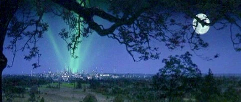 The Emerald City lit up in Disney's 1985 Return to Oz.