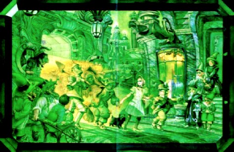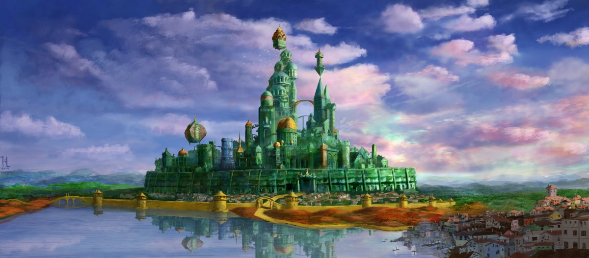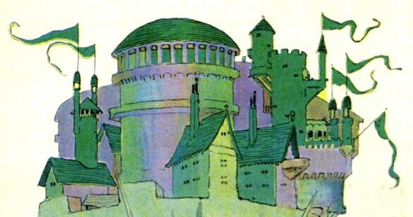 A very faithful illustration of the Emerald City as it appeared in the original book by L. Frank Baum in 1900.