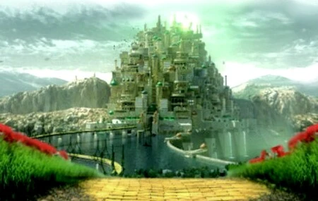 Despite looking nearly identical to the 1939's Emerald City, unlike the design of MGM, this city is given a wall around it like described in the original book by Baum.
