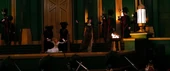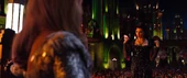 Flying into Emerald City square, Evanora faces an angry crowd held back by Winkie soldiers as her guards chain Glinda on the dais. Announcing that this is what happens to those who defy her, Evanora blasts Glinda repeatedly with green lightning as the crowd shouts in protest.