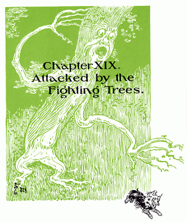 - "The Scarecrow, who was in the lead, walked forward to the tall tree where there was an opening to pass into, but just as he came under the first branches they bent down and twined around him, and the next minute he was seized by the long branches and raised from the ground and flung headlong among his fellow travelers. This did not hurt the Scarecrow, but it surprised him, and he looked rather dizzy when Dorothy quickly picked him back up and padded his straw to even out the lumps under his clothing that was caused by the fall. "