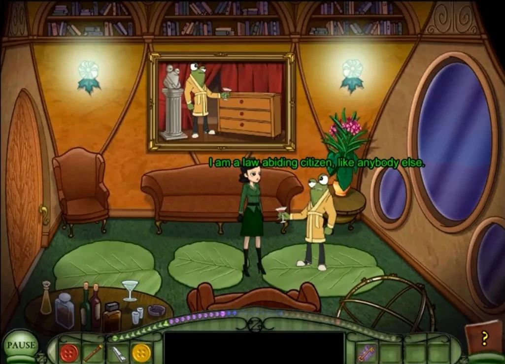 Petra, interviewing the Frogman, in his villa.