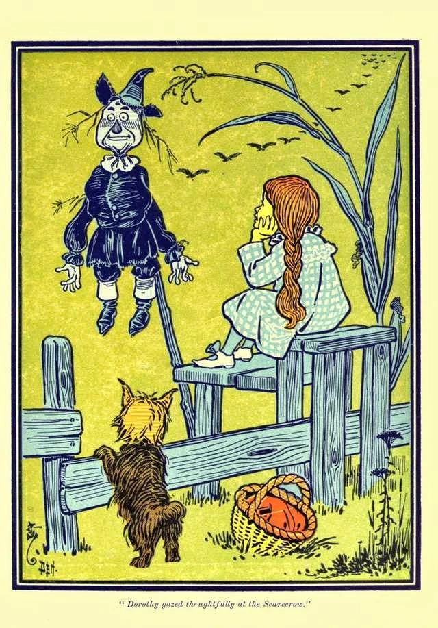Dorothy meets the Scarecrow by W.W. Denslow 1900.