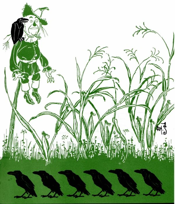 - "There was a great cornfield beyond the fence, and not far away Dorothy saw a Scarecrow, placed high on a pole to keep the birds away from the ripe corn."