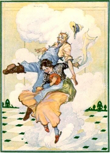 Uncle Henry and Aunt Em are magically teleported to Oz. By John R. Neill.