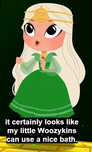 He was in the Emerald City when Ozma and Glinda left to visit Queen Lurline in the Forest of Burzee, and when the Mimics took advantage of their absence to overrun Oz. When King Umb and Queen Ra succeeded in taking over the Emerald City, Ra planned to have the Woozy cut up into building blocks. (The Magical Mimics in Oz)